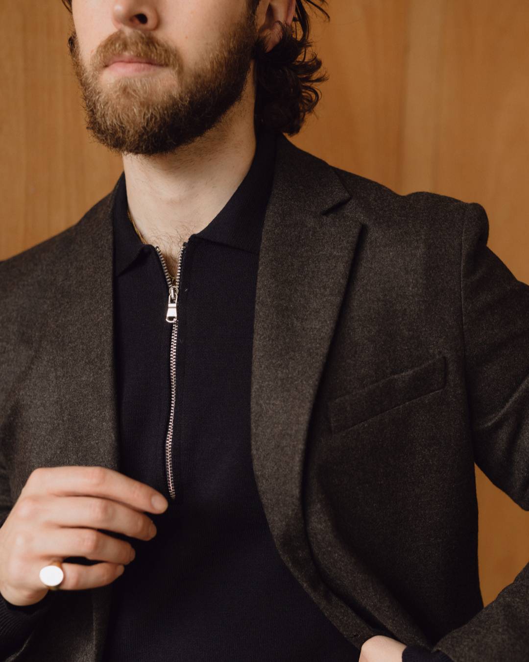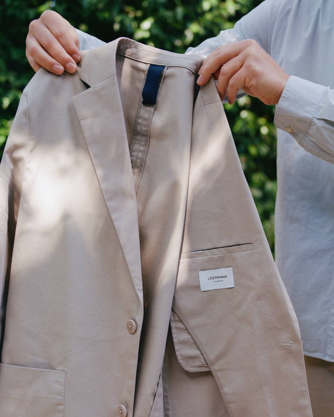 Our blazer is unstructured and unpadded on the shoulder and around the body with space and stretch for movement.