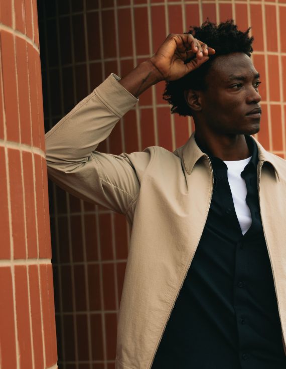 A lightweight and versatile jacket that combines everyday ease with performance. Made from crease-free and water-resistant 360TechWeave™ with four-way stretch, developed in Nomi, Japan in the Ishikawa prefecture. The technical fabric offers a matte handfeel to keep with the look of everyday wear with hidden performance. Its sleek silhouette offers room to layer to seamlessly to transition from season to season.