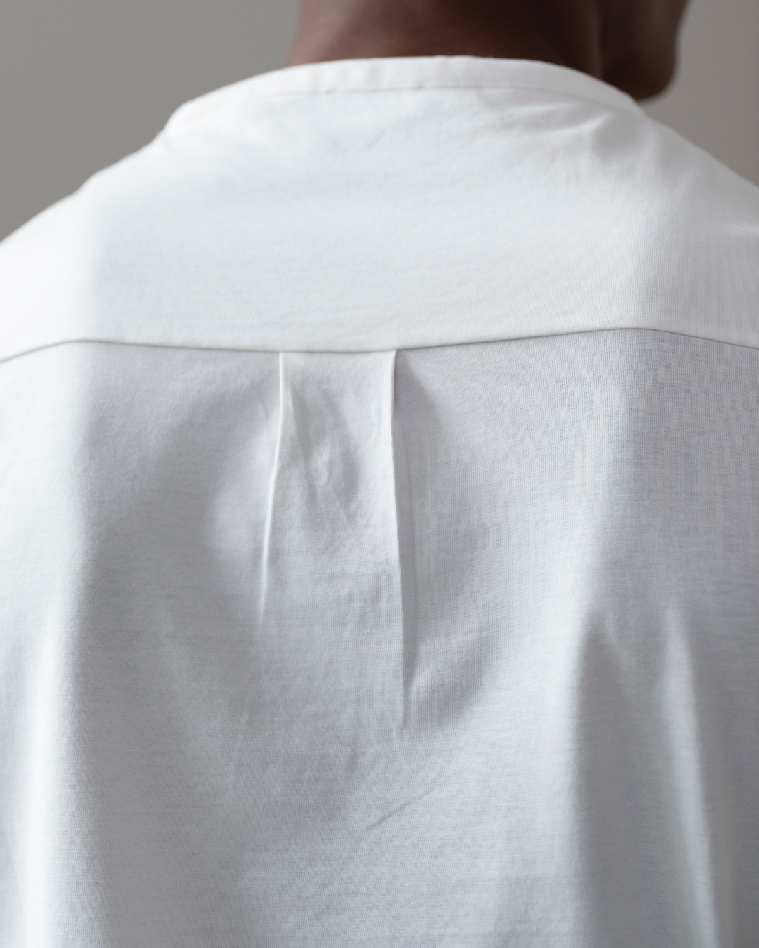 Made from organic cotton, with 175GSM and a structured feel – designed with a back-pleat for increased movement, a subtle curved hem and split sides.