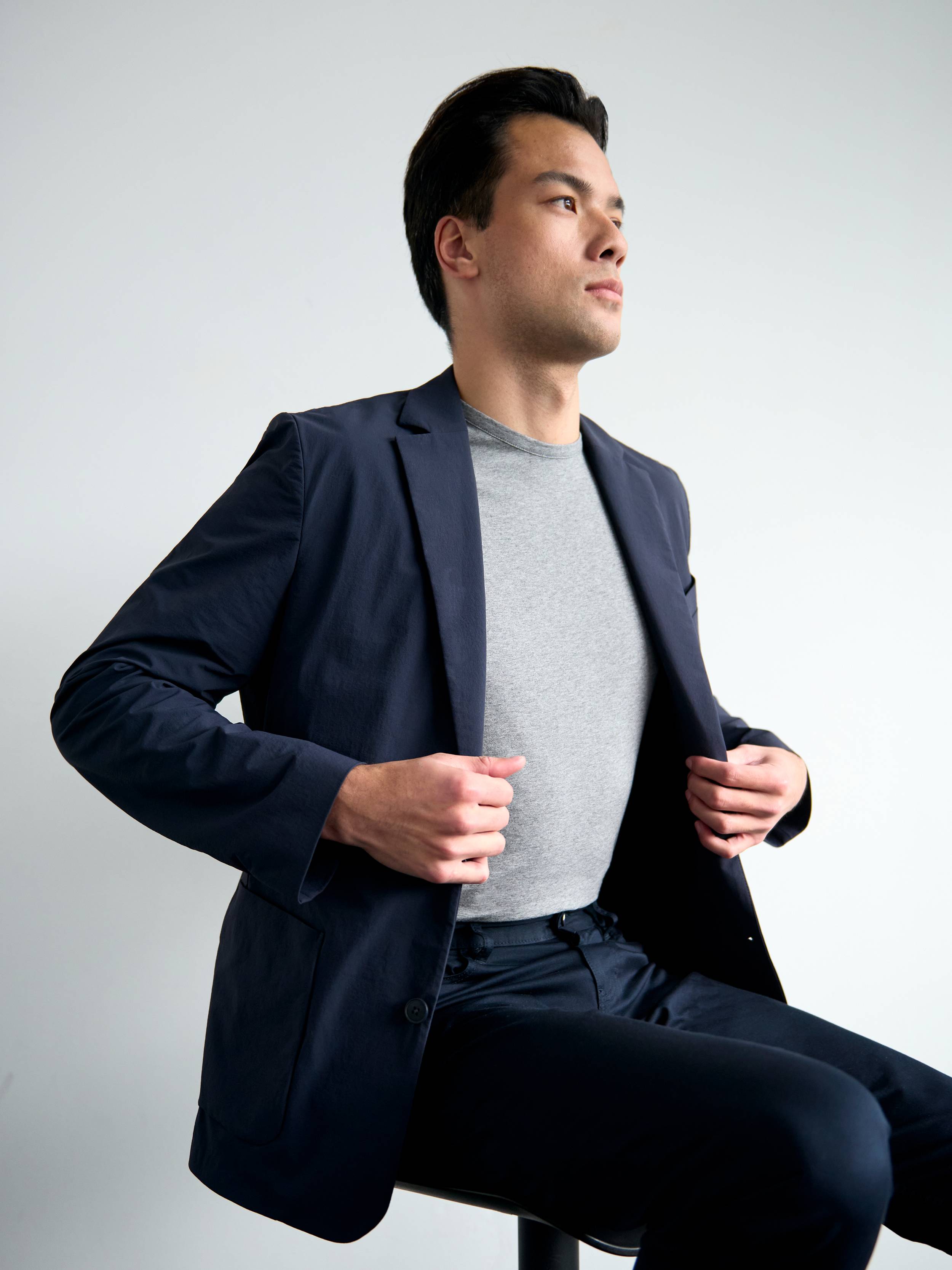 A lightweight and versatile blazer that seamlessly combines elevated workwear with hidden performance. Made from a technical quick-drying, water-resistant fabric developed in Nomi, Japan, it’s perfect for the office, and city commutes.