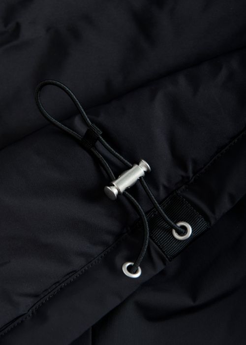 A hidden elasticated pull cord hem, fixed discreetly within the garment and finished with premium metal trims, ensures an adjustable yet sleek fit. Designed with low-loft recycled insulation for lightweight warmth (80gsm sleeves, 100gsm body), this jacket moves effortlessly with your body, embodying the perfect balance of style, functionality, and sustainability