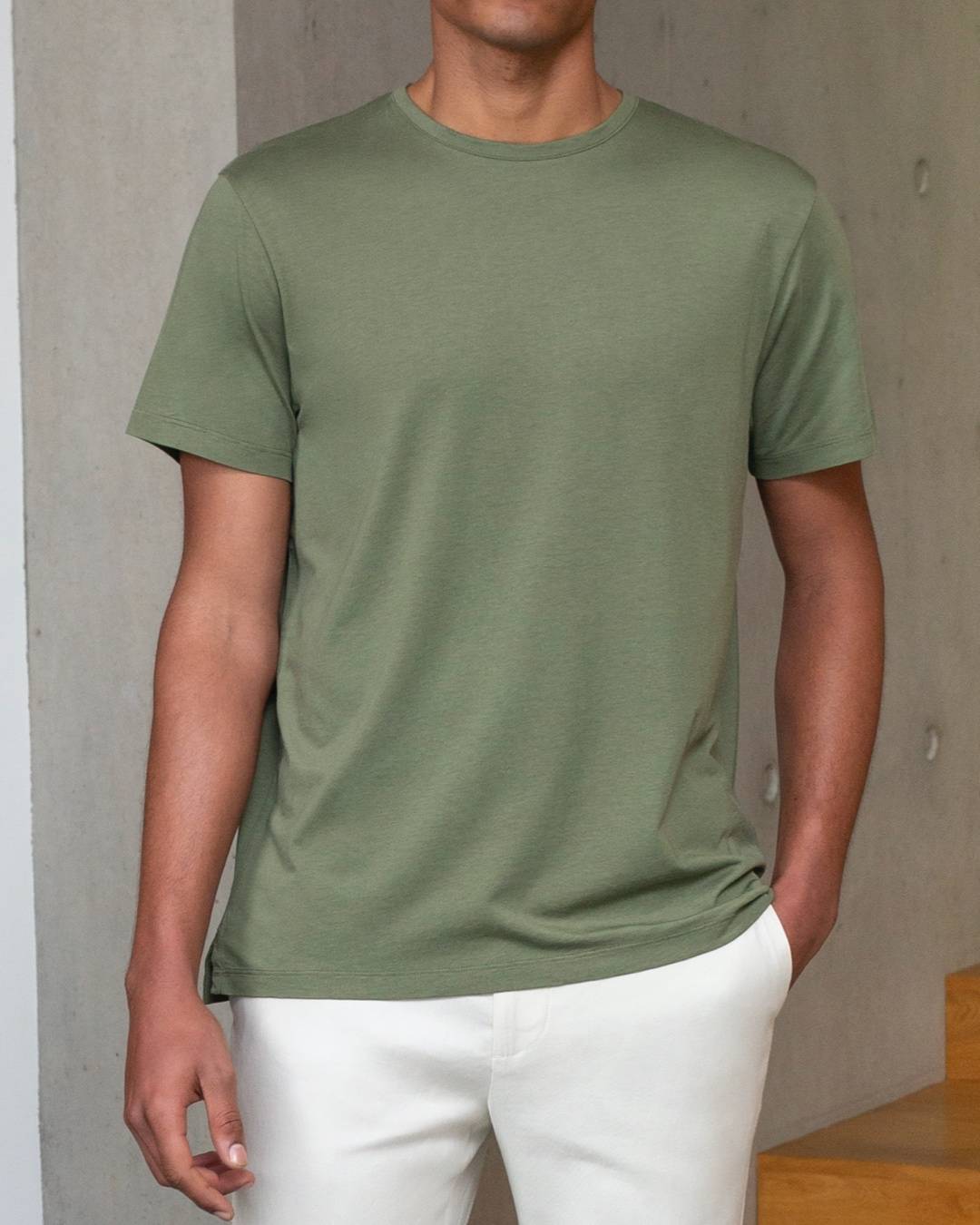 Our new upgraded tee is here. With a lower impact and an improved fit, our 155 GSM TENCEL™ Tee is crafted with low-impact fibres sourced from eucalyptus trees and organic cotton. Discover three new colours now.