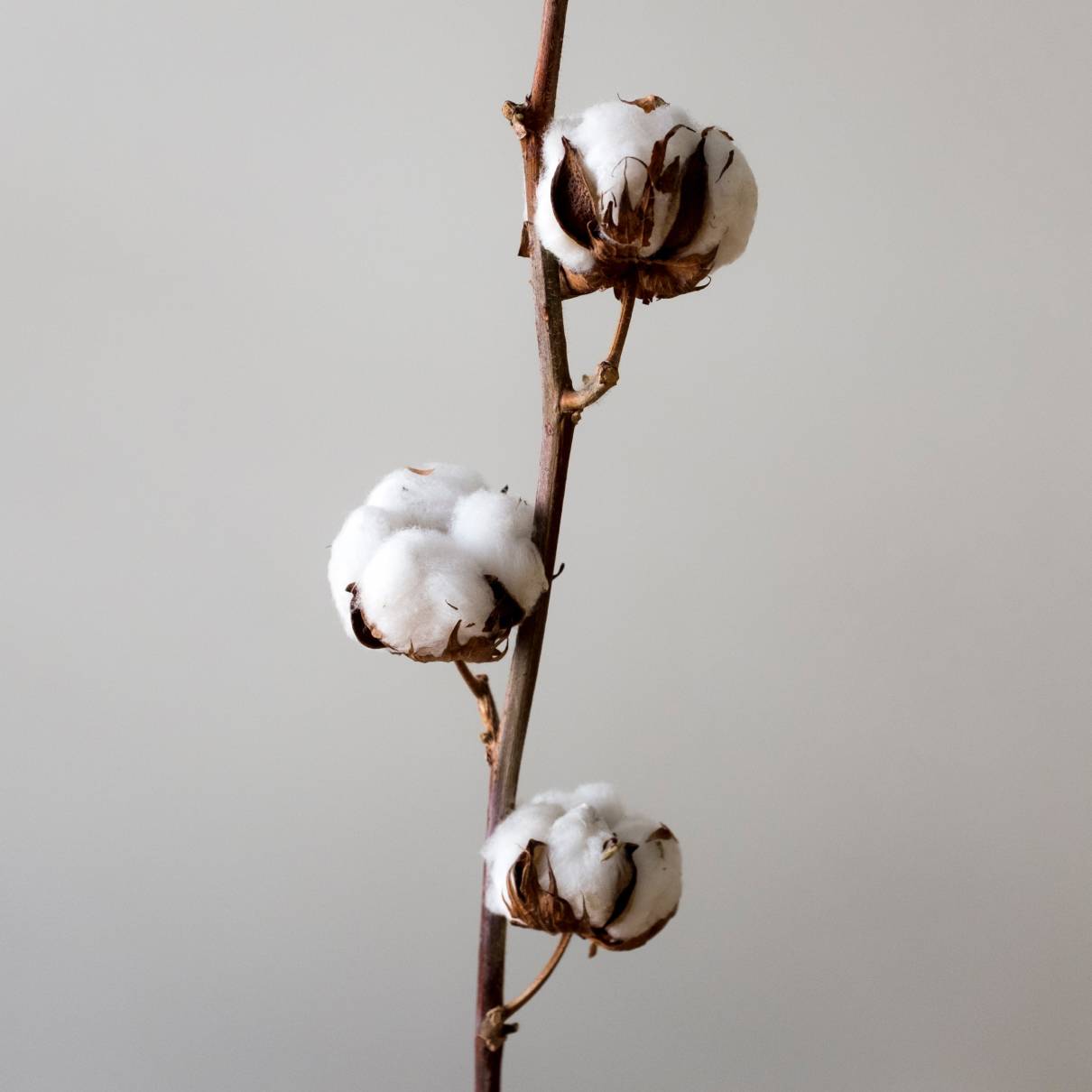 Organic cotton is farmed without the addition of fertilisers and pesticides and avoids the use of genetically modified seeds and artificial irrigation, resulting in a lower footprint than intensively farmed cotton.