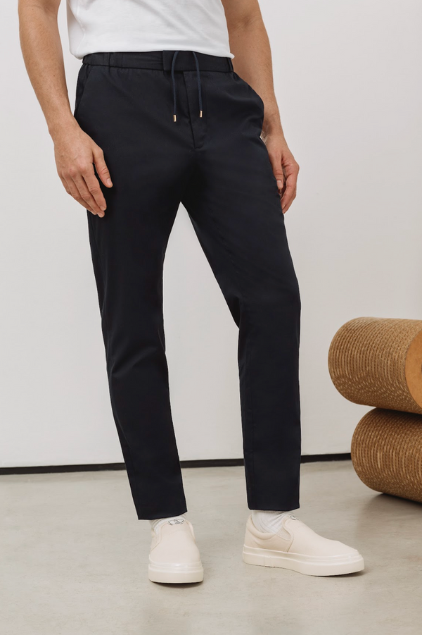 A hidden elastic, belt-free waistband for 24 hour comfort. Look smart without feeling restricted.